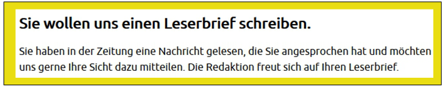 Seit 2015 hat sich eigentlich nicht viel geändert! ----------------------------------------------------------------- Örtliche Presse, ein Leserbrief aus dem Jahr 2015