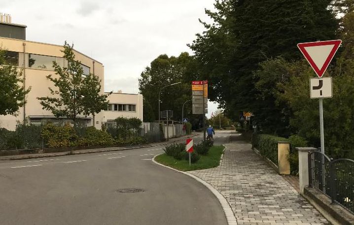wenn er aus dem Rathaus kommt, an dieser unübersichtlichen Stelle sogleich auf die Fahrbahn treten muss.
