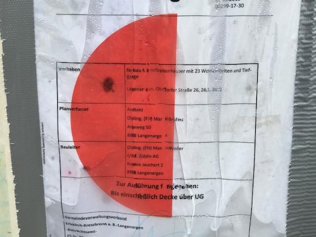 Nun ist wieder der vorherige Zustand mit dem Roten Punkt und mit der nicht lesbaren Schrift ca. ein Meter hinter dem Bauzaun sichtbar. Forum Langenargen 11.11.2019 Die Befolgung von Vorschriften ist am Krayerareal offensichtlich ein Fremdwort.