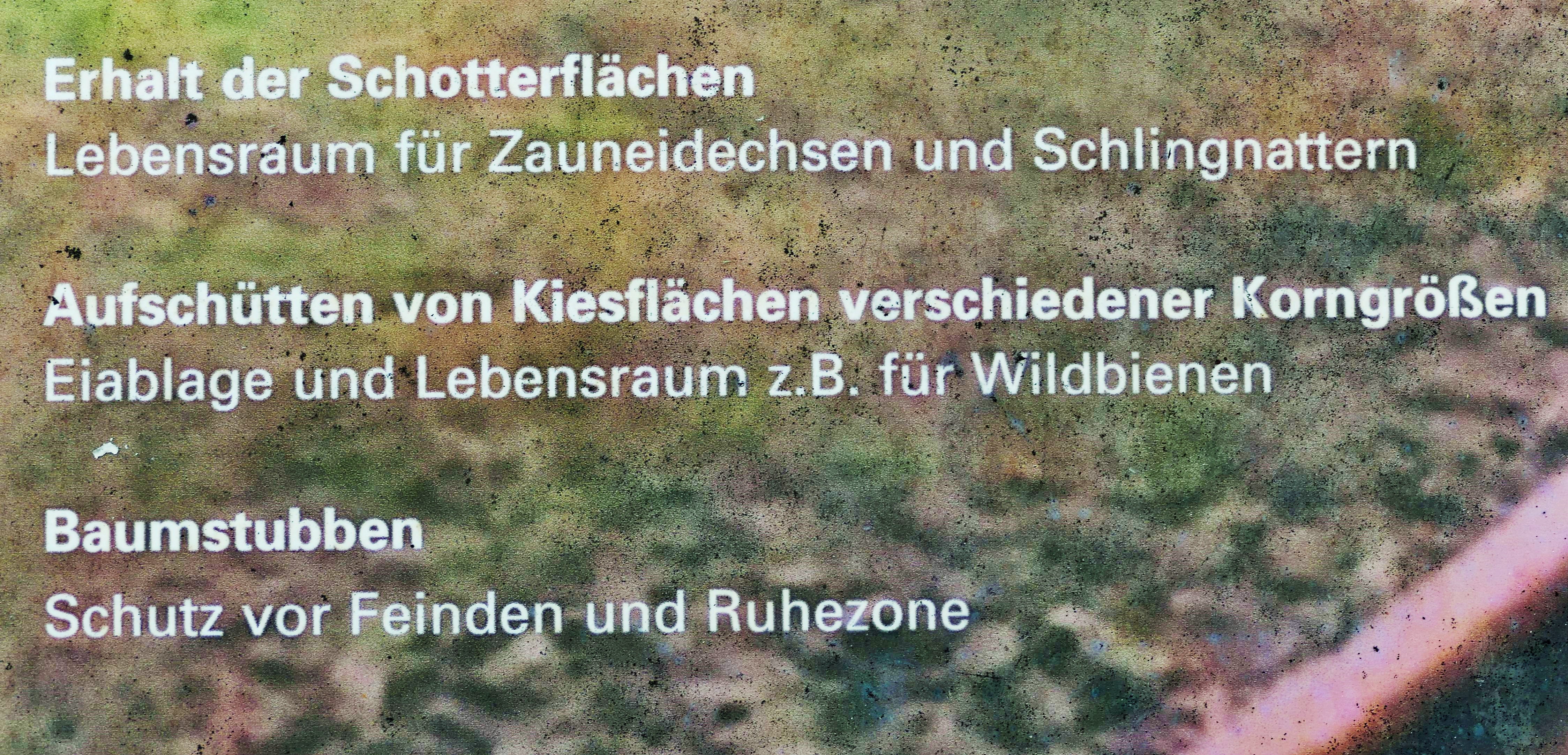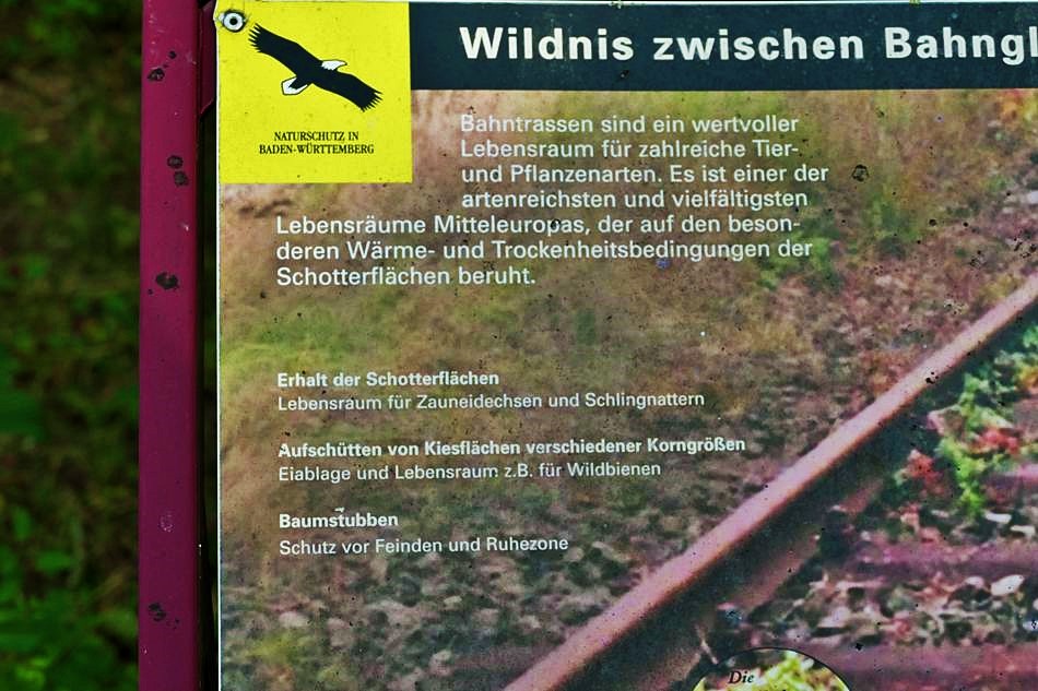 Wir wunderten uns schon immer, dass es in LA so viele Stein- und Schottergärten gibt (Gärten des Grauens) - Man spricht auch von ökologischem Sündenfall. Jetzt haben wir eine Mitschuldige gefunden, nämlich die Gemeinde. Sie hat vor Jahren am Bahndamm im Hof Vetter ein Informationsschild aufgestellt, auf dem u.a. für Schotterflächen z.B. entlang von Bahnstrecken geworben wird, da sie als Unterschlupf für Eidechsen und Schlingnattern geeignet sind.