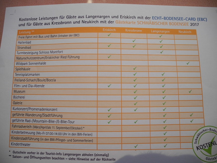 doch nicht ahnend, dass sie neue Ungereimtheiten veröffentlicht. Auf der Merkliste: "Kostenlose Leistungen für Gäste aus Langenargen und Eriskirch" sind erstaunlich