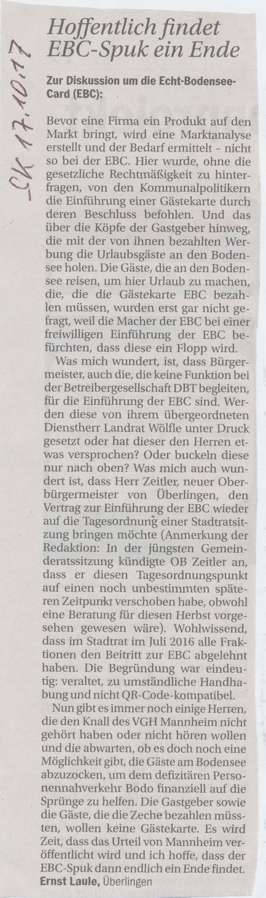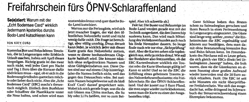 Südkurier mir graut vor dir – nicht nur wegen des Artikels: "Kommt die umstrittene EBC nun doch?"* (nach Uhldingen - Mühlhofen)