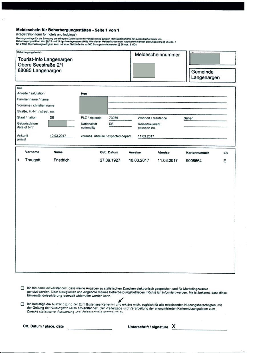 Besuch im Touristikbüro Da es zwischen unseren Recherchen und den Angaben von Herrn Jost zur Zahl der Installationen bei Vermietern einige Differenzen gab, beschlossen wir, seine Angabe von insgesamt 100 Installationen der Privat-Vermieter und Hotels für die EBC selbst einzusehen. Übrigens lag bis heute die schriftliche Aufforderung zur Stellungnahme vom Verwaltungsgerichtshof Mannheim auf dem Tisch des Bürgermeisters. Die Frist ist heute abgelaufen. Dies wurde der Bevölkerung tunlichst verschwiegen. H. Walter und R. Motz für das Forum Langenargen 07.04.2017 |